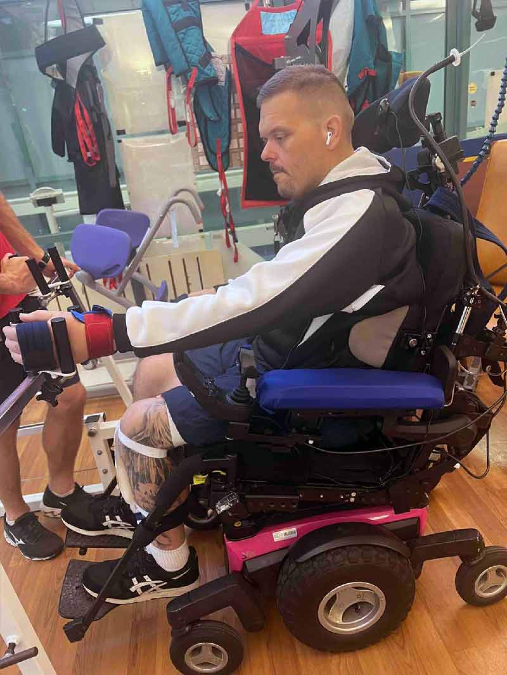 Aaron is very slowly getting some feeling and movement back, but cannot walk or feed himself. However, he wants everyone to know that despite the situation, he is in good spirits.