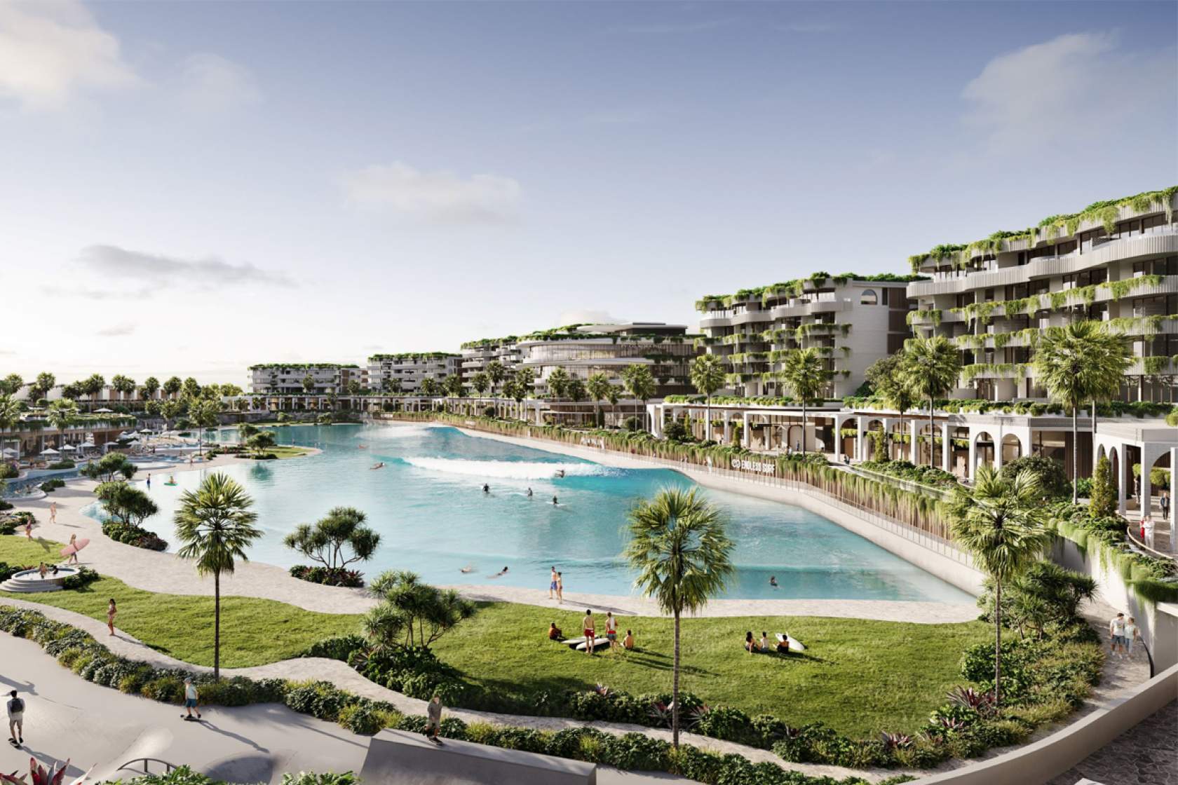 The Endless Surf lagoon at Palm Valley will cater to all skill levels with customizable wave settings, creating an inclusive surf experience for beginners and professionals alike.