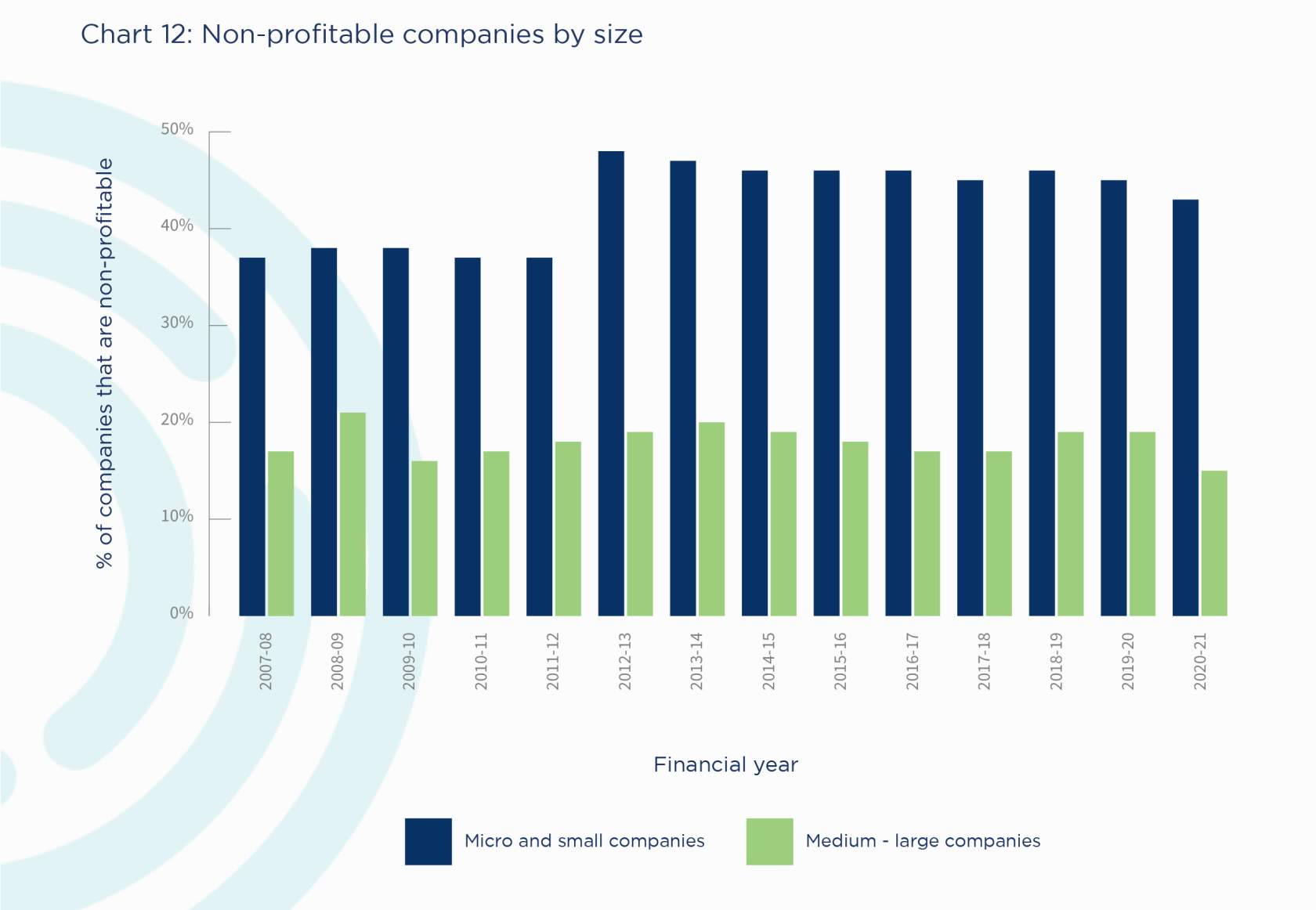 According to the data, 43 per cent of small business are non-profitable, which is the lowest proportion since 2012-2013 when the number was 48 per cent. This compares to 15 per cent of medium and large companies which were non-profitable. This is the lowest proportion since the Global Financial Crisis.