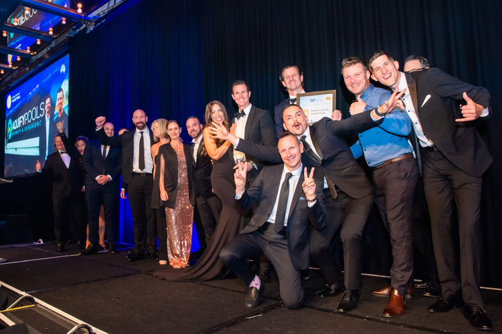 Caption: Aquify Pools onstage at the Sofitel Sydney collecting their 2023 National Business of the Year Award. This year the National Awards Gala will held at SPLASH! on the Gold Coast.